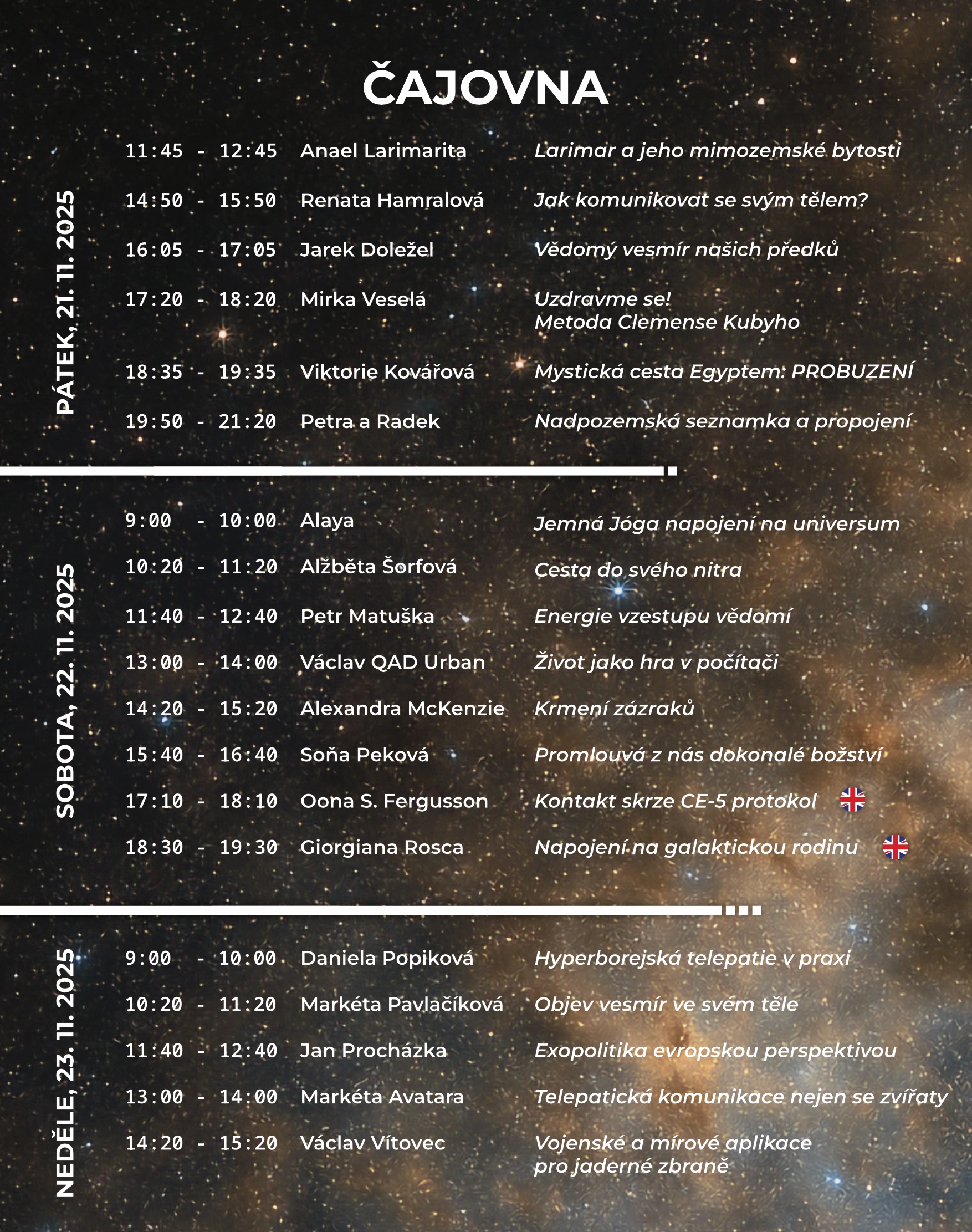Pro zahraniční diváky je pak zajištěn překlad českých hostů do angličtiny.